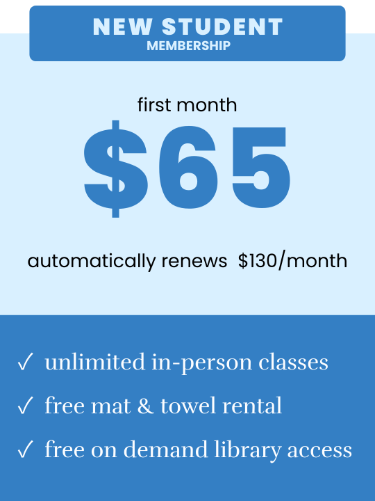 If you plan to take classes at least twice a week, then a membership will provide the best value. Memberships are subscriptions — you pay a monthly fee and receive a set of defined benefits. Choose from 3 different membership levels, based on the number of in-person classes you want to take.